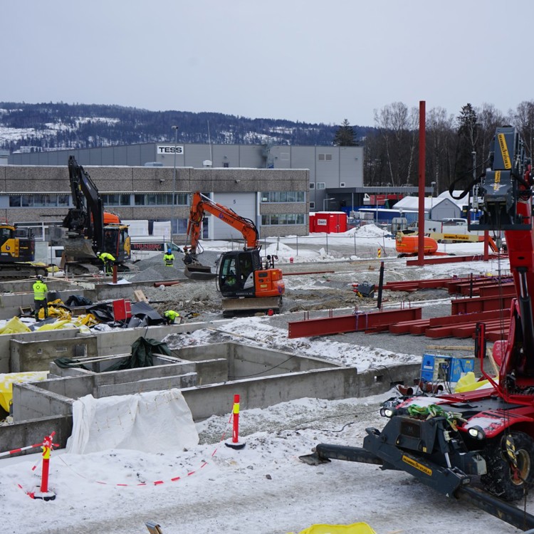 I begynnelsen av februar 2026 gjennomførte POB Betong siste del av betongstøp, og tilbakefylling i byggegrop var i gang. Stålarbeidene og prefab er også påbegynt parallelt.
