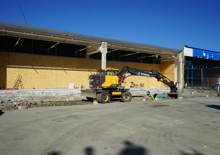 Prosjektet begynte i juni, med peling, oppsett av pro-vegg og rivning. I slutten av juli gikk graver i gang, og i uke 34 er alt klart for at POB Betong kan begynne arbeidet med bunnplaten. Biltema Mjøndalen vil holde åpent som vanlig i hele prosjektperioden.