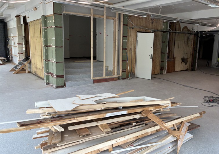 – Mange vegger har blitt revet og mye betong har gått ut av bygget. Enkelte steder har det blitt flere åpne løsninger og søyler istedenfor veggskiver, og i andre deler av bygget har vegger blitt gjenoppbygget.