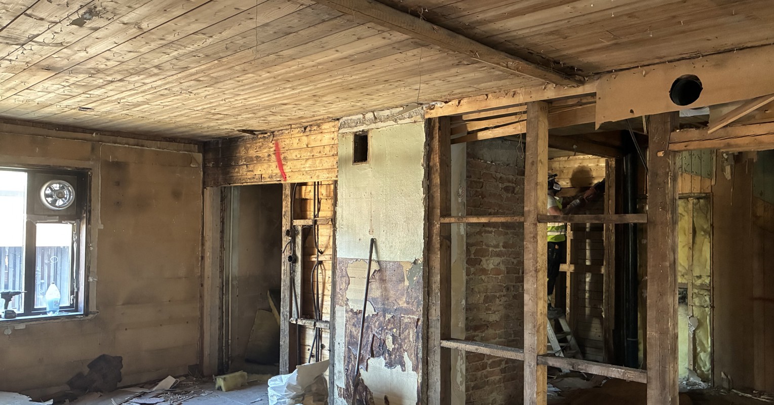 Rivearbeider i gang i førsteetasje.