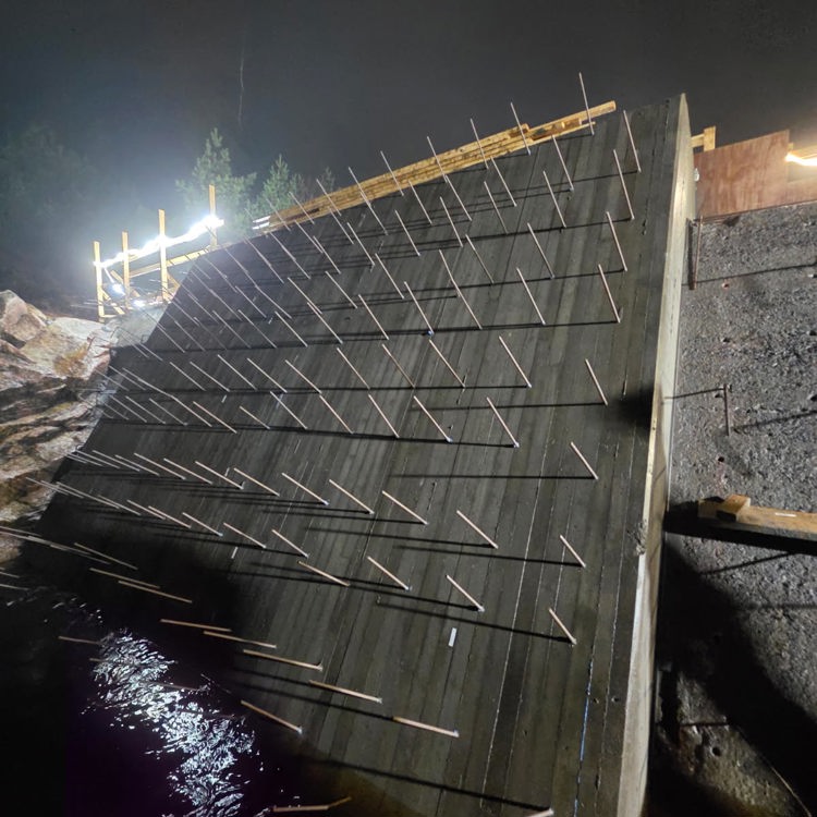 – Dette er et spennende oppdrag hvor det etterstrebes rissfrie overflater og visuelt flott utseende på demningen. Vi gjennomfører svinnreduserende tiltak i resepten, logger temperaturer, tar luftprøver og fasthetskontroller.