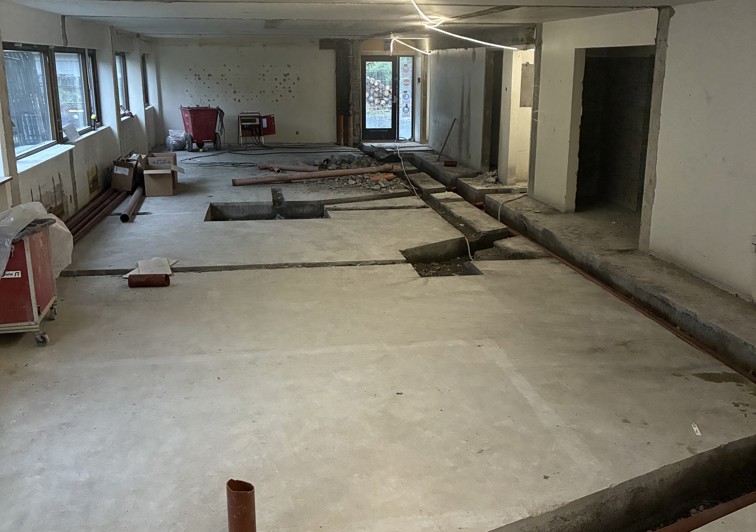 Arealet i underetasje hvor veterinæren Petrus skal ha sine nye lokaler. Gulvene slisset for tekniske føringsveier.