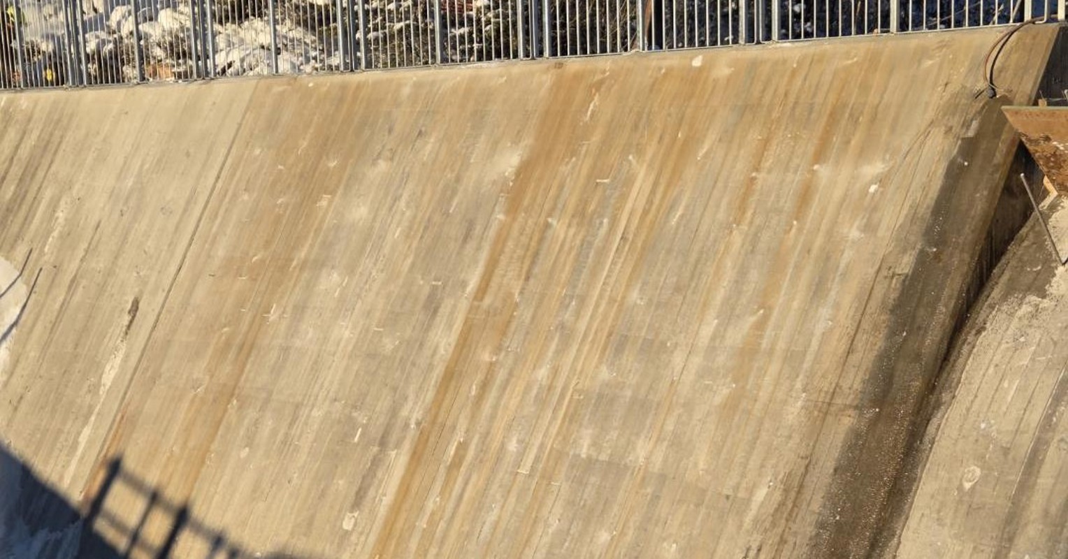 – Dette er et spennende oppdrag hvor det etterstrebes rissfrie overflater og visuelt flott utseende på demningen. Vi gjennomfører svinnreduserende tiltak i resepten, logger temperaturer, tar luftprøver og fasthetskontroller.